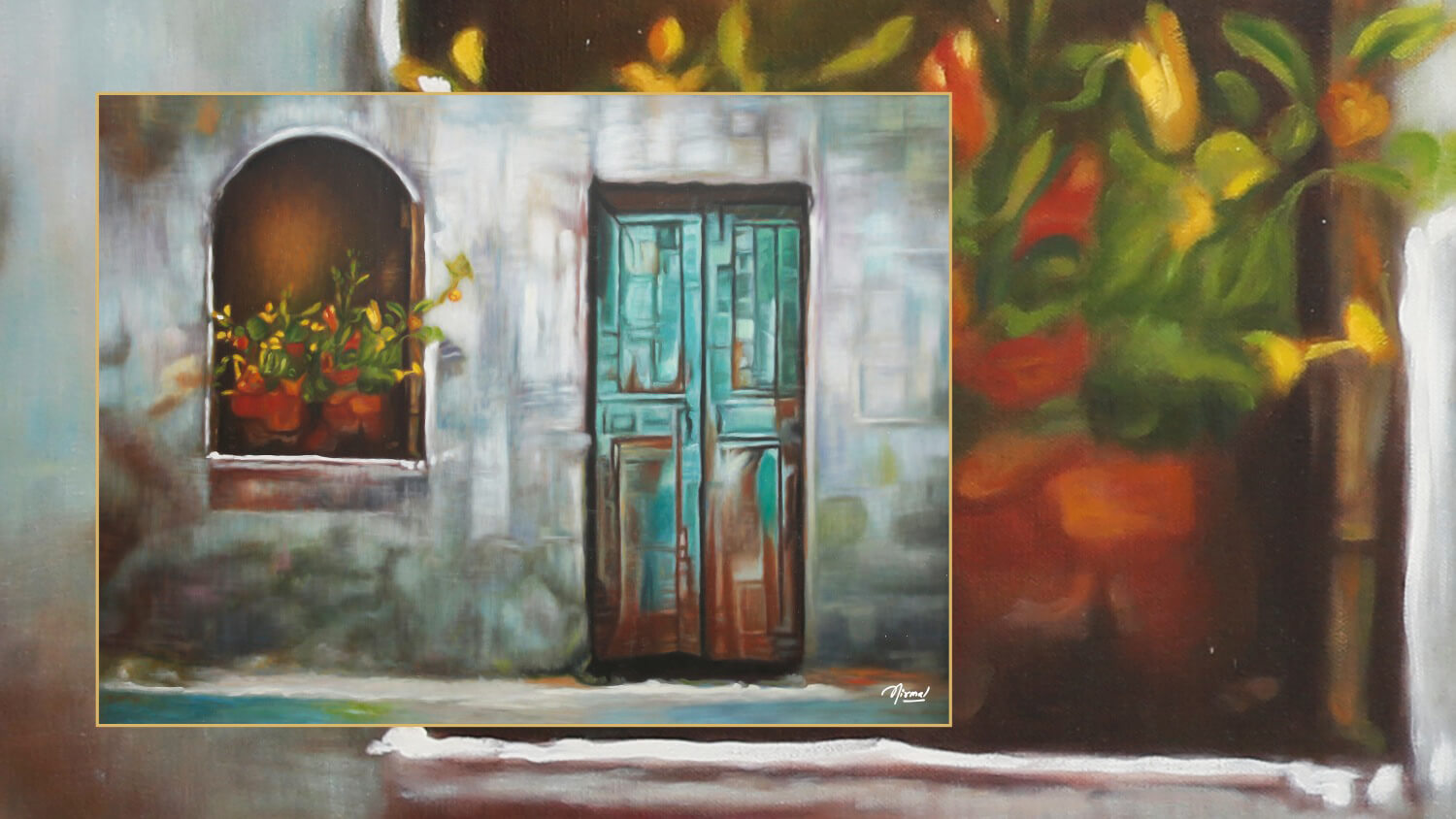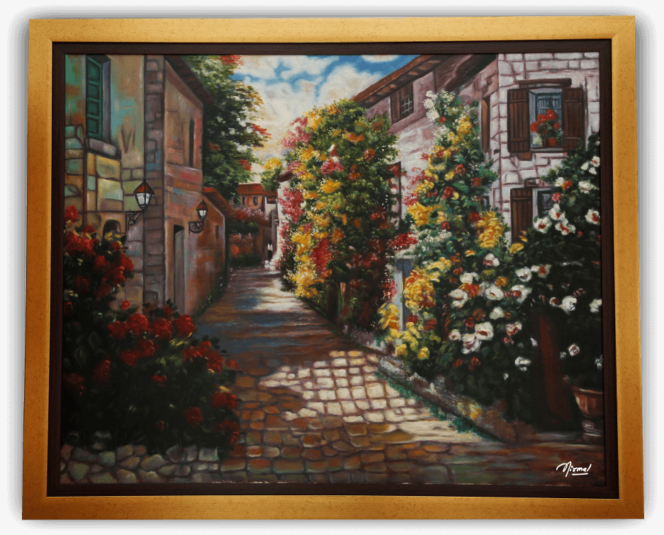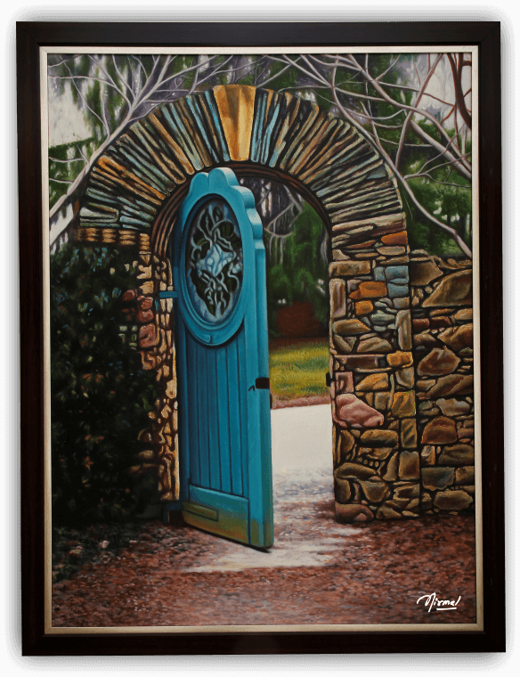 Nirmal is known for exploiting this genre as he uses natural scenery to tell a story, illustrate an idea, or conceptualize a metaphor. He places equal emphasis on the figures in the foreground.
